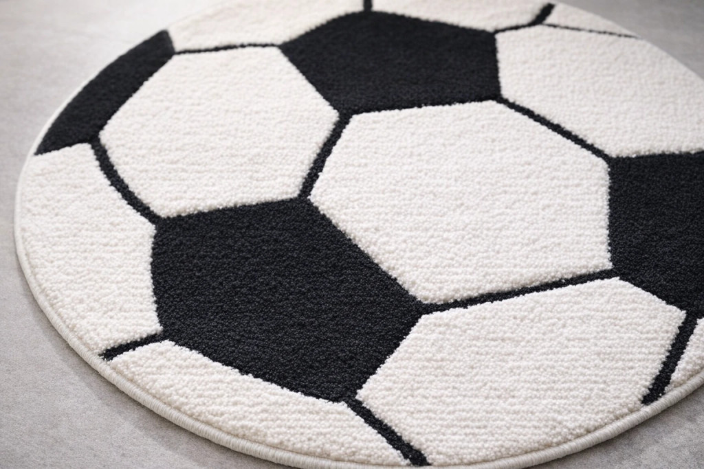 Fedezd fel a játék és a kreativitás világát a Fantasio gyerekszőnyeggel, mely a legkisebb sportolók számára készült. A fehér alapon megjelenő fekete focilabda mintázat igazi szemet gyönyörködtető, amely feldobja bármely gyerekszobát vagy játszósarkot. A 120 cm-es méret tökéletesen illeszkedik a kisebb helyiségekhez is, lehetővé téve az izgalmas játékélményeket, miközben a gyerekek elképzeléseiket valós elemként élhetik meg.